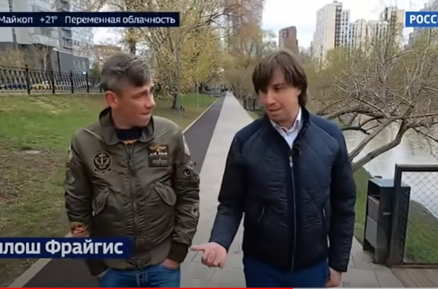 В получасовом репортаже «России 24» Флайшганс ругает чешские СМИ и говорит, что друзья из Чехии просят его давать «объективную картину» того, что происходит между двумя странами: