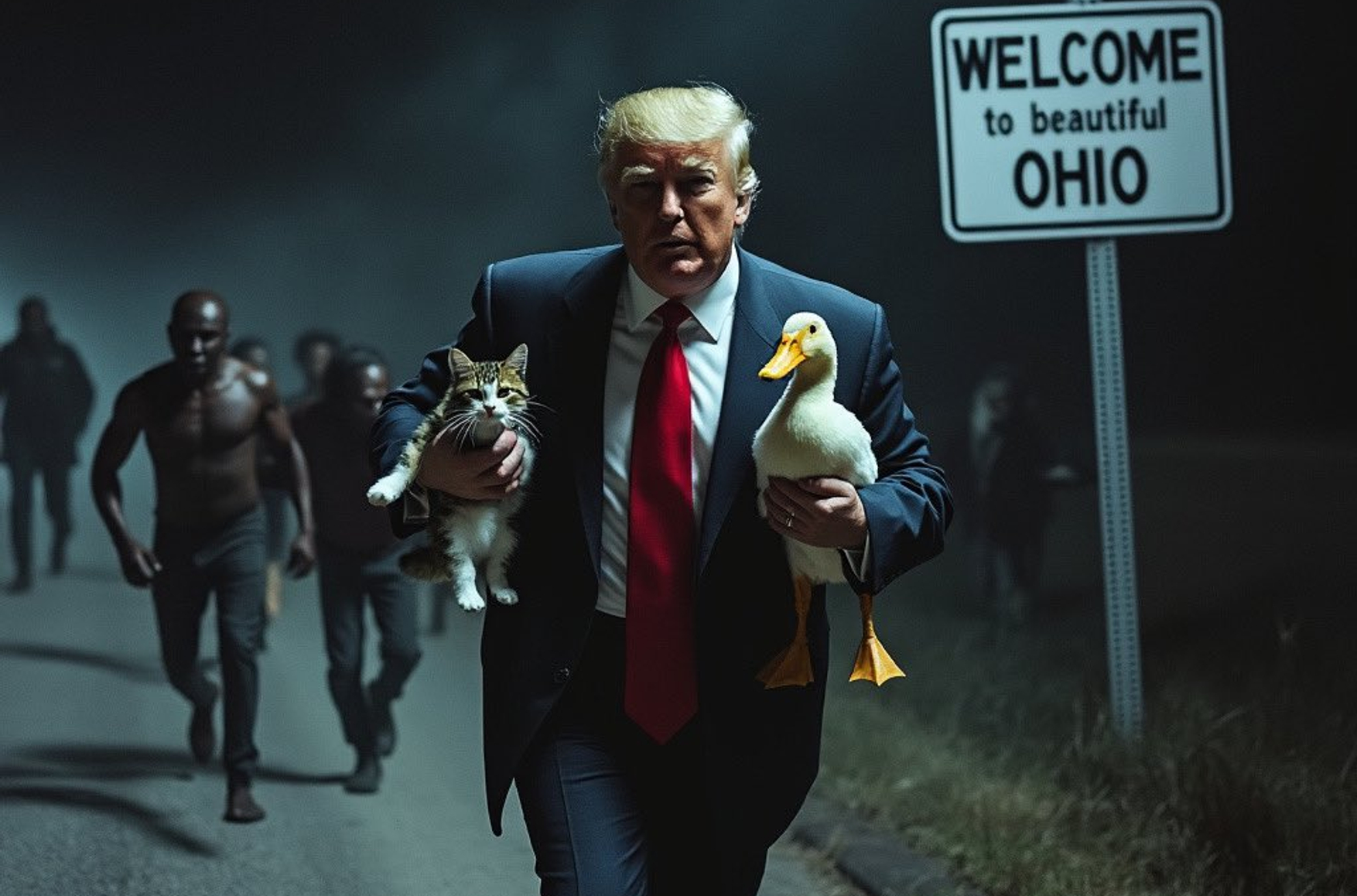 После этого в соцсетях стали распространяться сгенерированные нейросетями картинки, где Трамп представлен как спаситель кошек и уток.