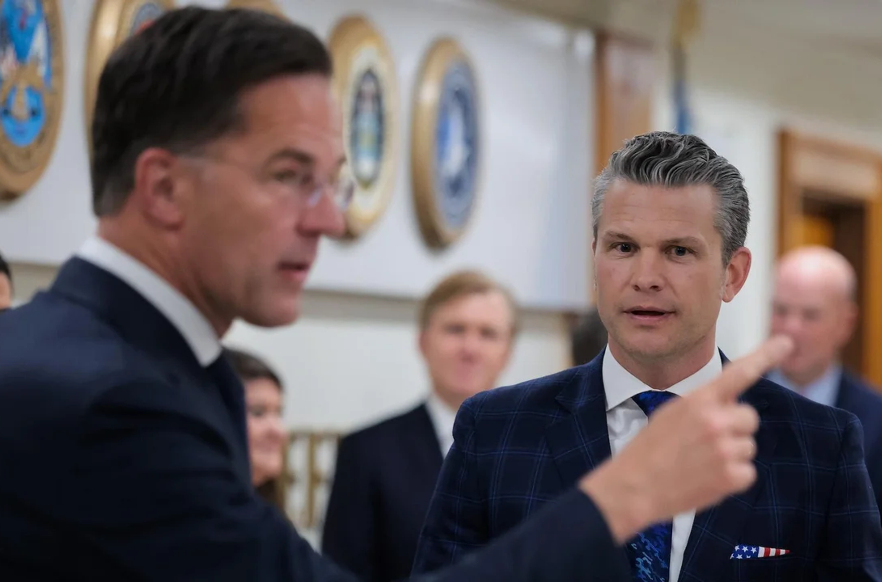 „Военное министерство США готово внести свой вклад. Мы по-прежнему четко осознаем, что наиболее эффективными средствами сдерживания российской агрессии являются, во-первых, мощная, боеспособная и возглавляемая европейцами НАТО, и, во-вторых, боеспособные украинские вооруженные силы, способные защитить себя и тем самым продолжать сдерживать российскую агрессию вдоль границы НАТО. Повторюсь: мир через силу”, — сказал Хегсет. <…>