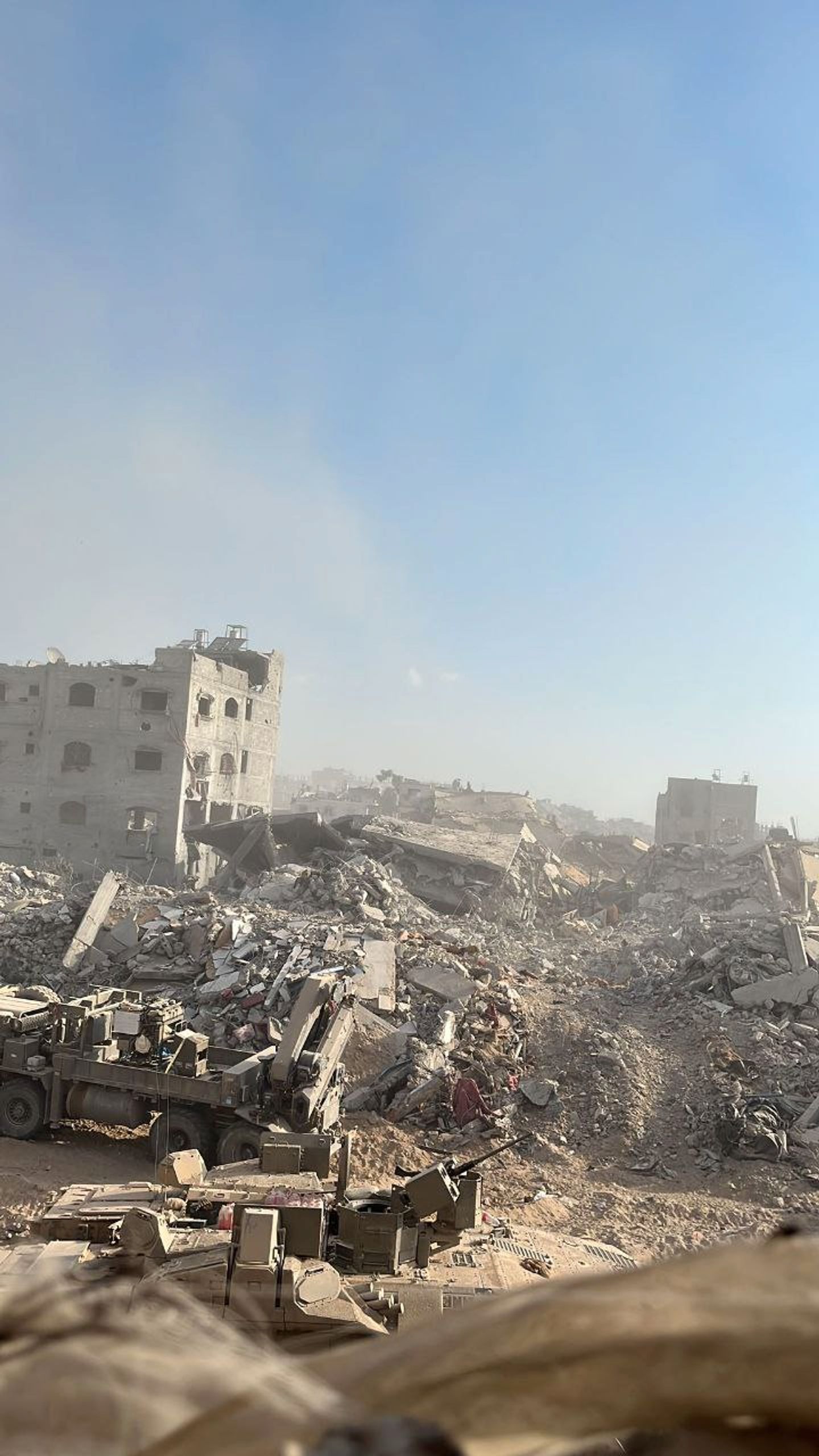 Я находился и на полигоне рядом с Газой, и по мере необходимости заходил внутрь. Газа внутри… Посмотрите любой боевик о войне с террором в Ираке, Сирии, Афганистане — всё одно и то же, развалины всюду похожи… Наша авиация очень постаралась, всё вдребезги.