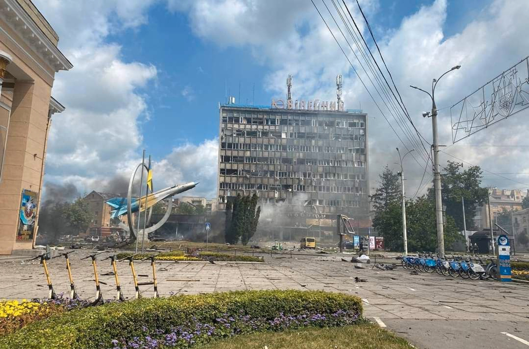 Photos of the aftermath of the missile attack on the city are being published in the media: