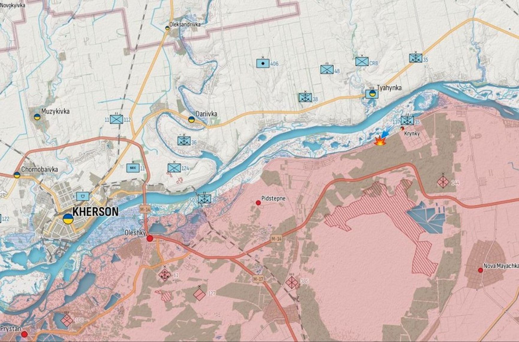 The AFU's largest landing operation to date occurred in mid-October upstream of the Antonov Bridge, near the settlement of Krynky. According to reports from war correspondent and military volunteer Alexey Zhivov, this was the “area of responsibility for several 'fresh' general-purpose units,” likely implying a shortage of combat experience. The lack of firepower was also evident, as initially, the Russians repelled the airborne assault with makeshift mortars. Despite these challenges, the AFU managed to establish a foothold in Krynky and began advancing toward the nearest road to complicate Russian logistics in the area and pose a threat to neighboring settlements, Poyma and Peschanivka.