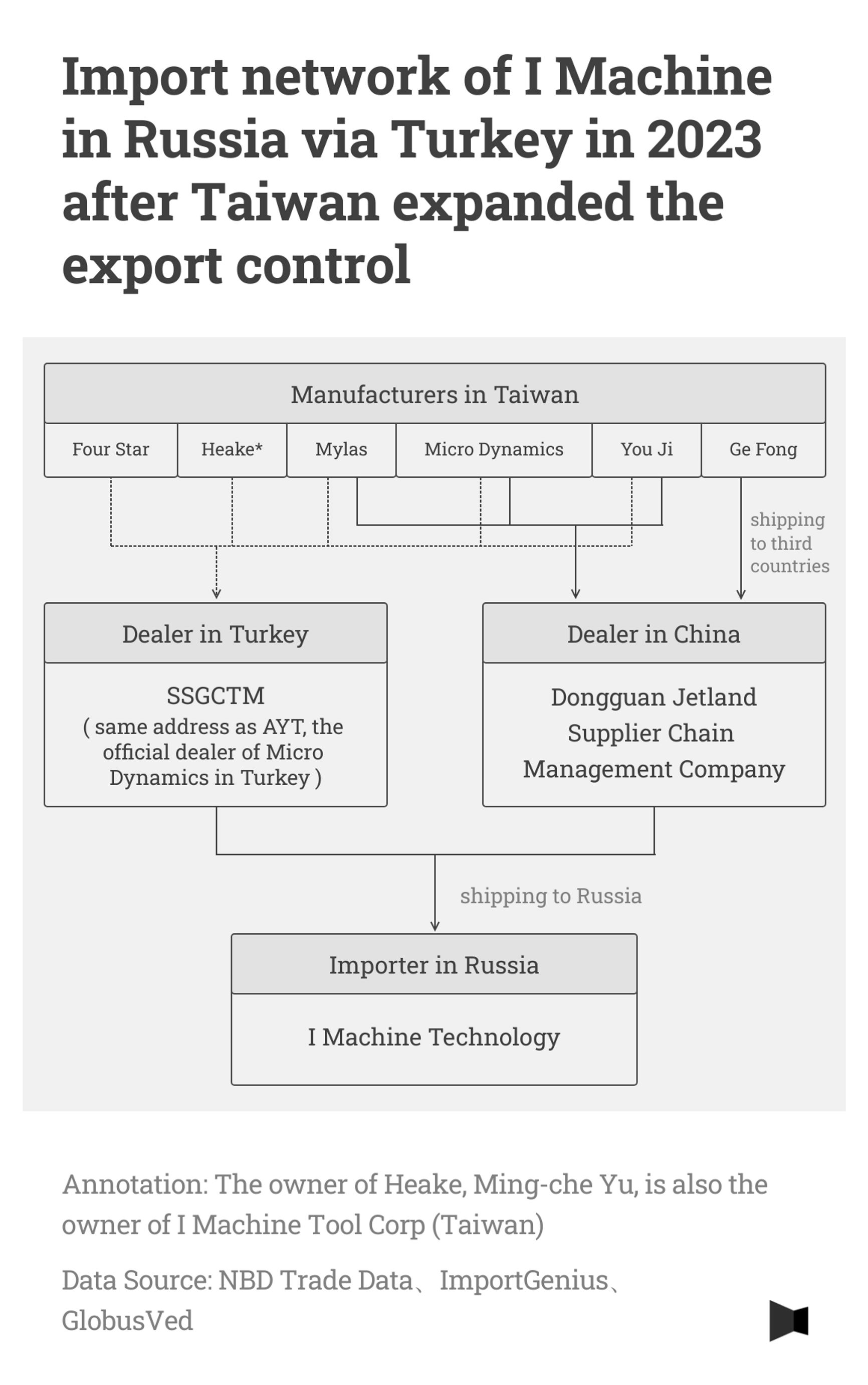 Between March and October 2023, I Machine Technology imported at least $17 million worth of Taiwanese machine tools. Among them were 28 units shipped via Turkey, 37 via China and 16 directly from Taiwan.