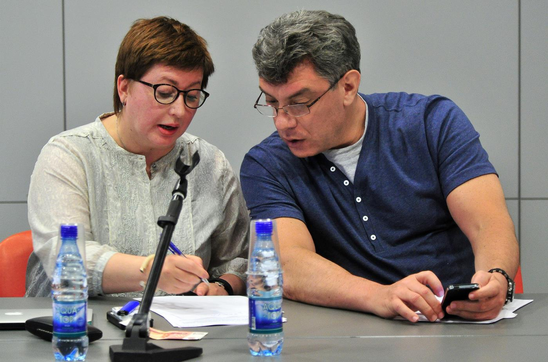 Я привела Бориса Немцова на пресс-конференцию Бориса Немцова. Кажется, речь шла о попытке реформирования «Газпрома», но, конечно, зашла обо всём, включая его знаменитые белые штаны, в которых он встречал Гейдара Алиева.