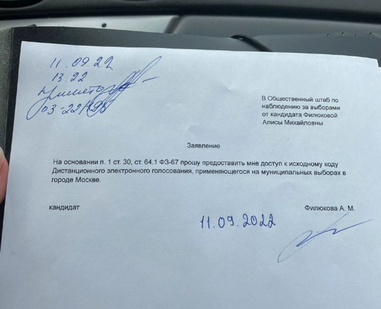 Филюкова и Ильин приехали в Общественный штаб с требованием получить исходный код для расшифровки публичной базы данных. При этом они запросили код без самих ключей, которые по правилам публикуются после окончания голосования. Кандидаты потребовали смарт-контракты, форму голосования и бюллетень, а также криптографические библиотеки, которые отвечают за формирование ключей шифрования.