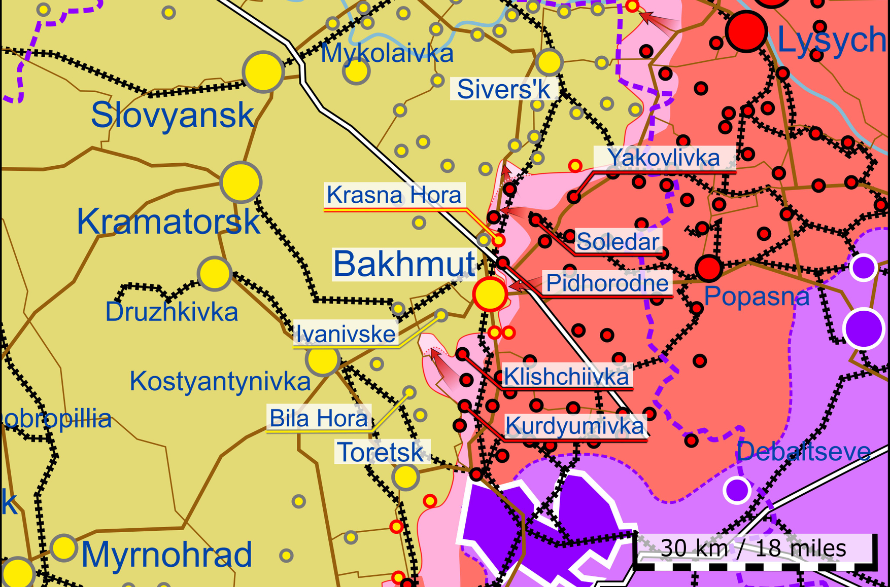 В Курдюмовке Донецкой области украинская артиллерия поразила и уничтожила российскую командную базу, пишет проект WarMonitor. В российских каналах информации об этом не появлялось, однако накануне, 30 января, пропагандистский WarGonzo утверждал, что к югу от Бахмута ВСУ обстреливают Курдюмовку и Клещеевку.