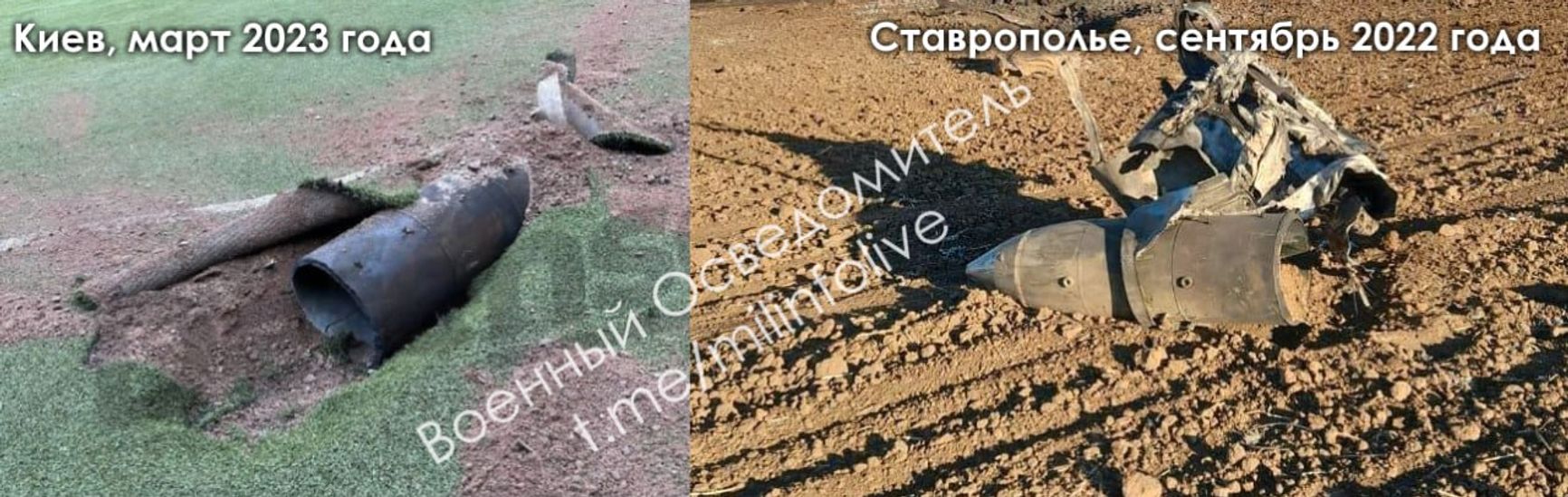 Telegram-канал «Военный осведомитель» ранее сравнил фото боевой части ракеты, упавшей в Киеве в ночь на 4 мая, и фотографии боевой части гиперзвуковой ракеты «Кинжал», упавшей из-за технической неисправности в сентябре 2022 года в Ставропольском крае. Авторы отметили, что сходство крайне высокое.