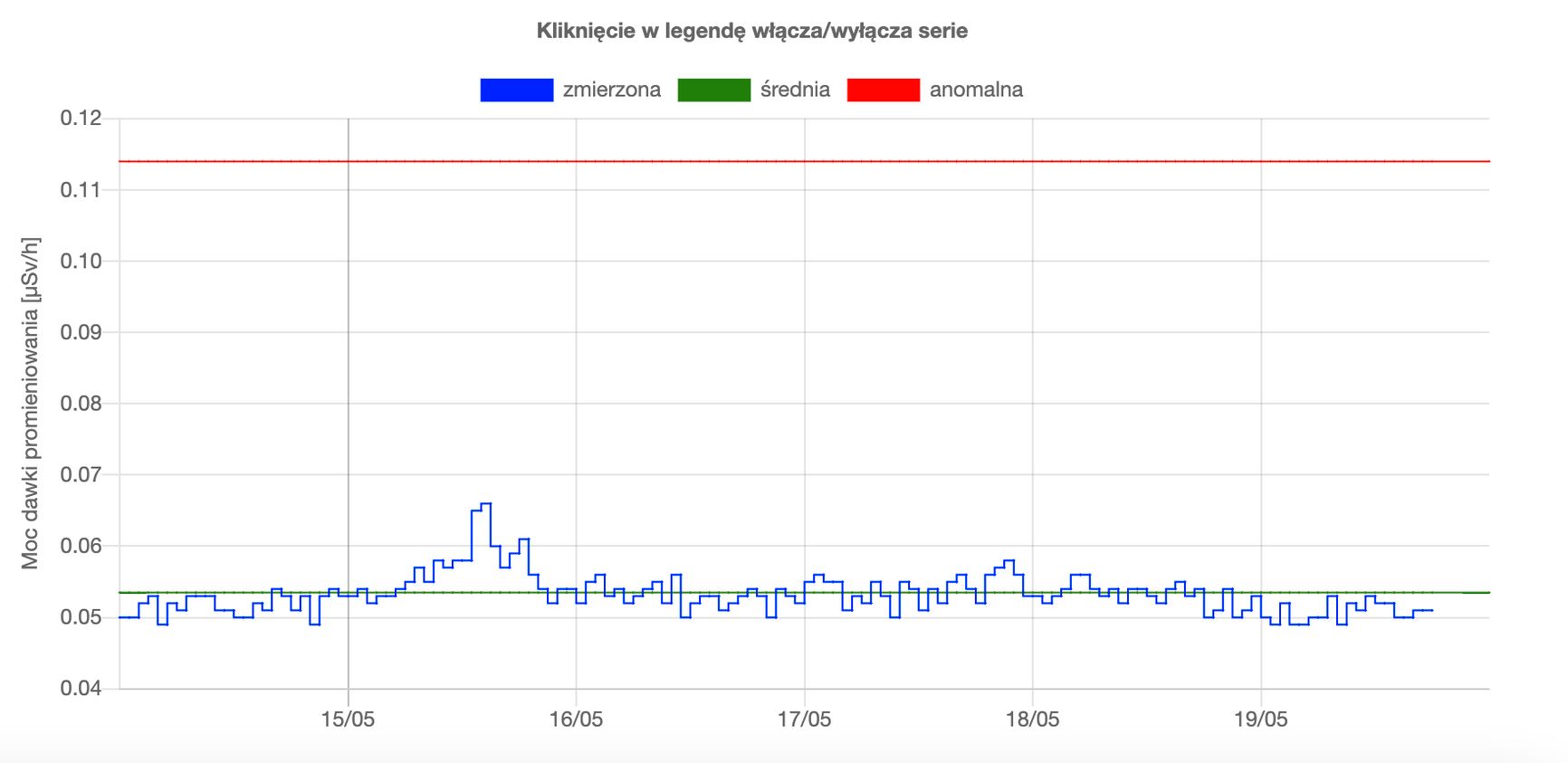 Государственное атомное агентство Польши в среду, 17 мая, опровергло сообщения о повышении уровня радиации в Люблинском воеводстве. Появившуюся информацию о «повышенной радиоактивности» в Хмельницком в Украине агентство также назвало ложной, отметив, что радиационной опасности нет. Если посмотреть данные этого датчика мониторинга радиоактивности в Люблине по гамме, то становится ясно, что это просто регулярные флуктуации и всплески. Они были там и в март, и в апреле.