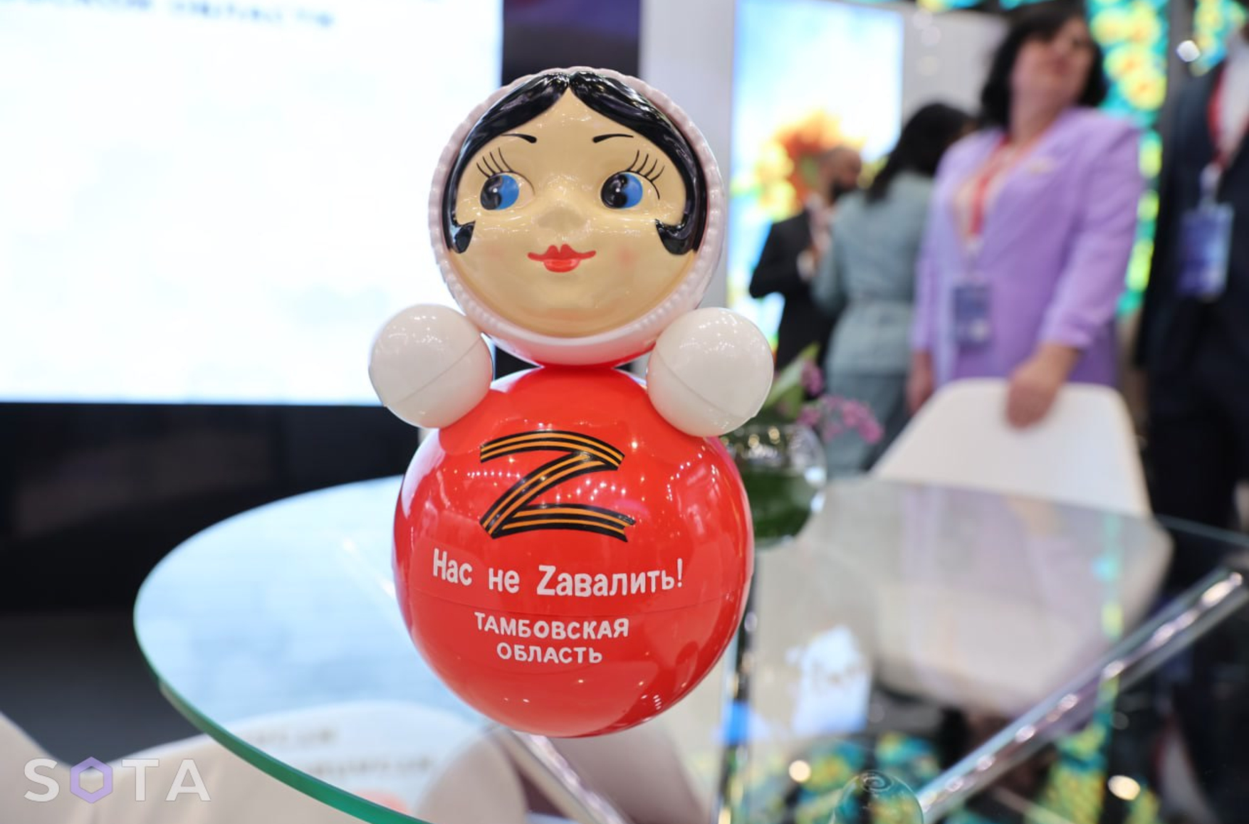 На Тамбовском стенде ПМЭФ напомнили не только об уроженце региона, композиторе Сергее Рахманинове. Представители стенда выставили неваляшку, родиной которой является Тамбов, украшенную одним из символов войны в Украине, используемых пропагандой, — Z.