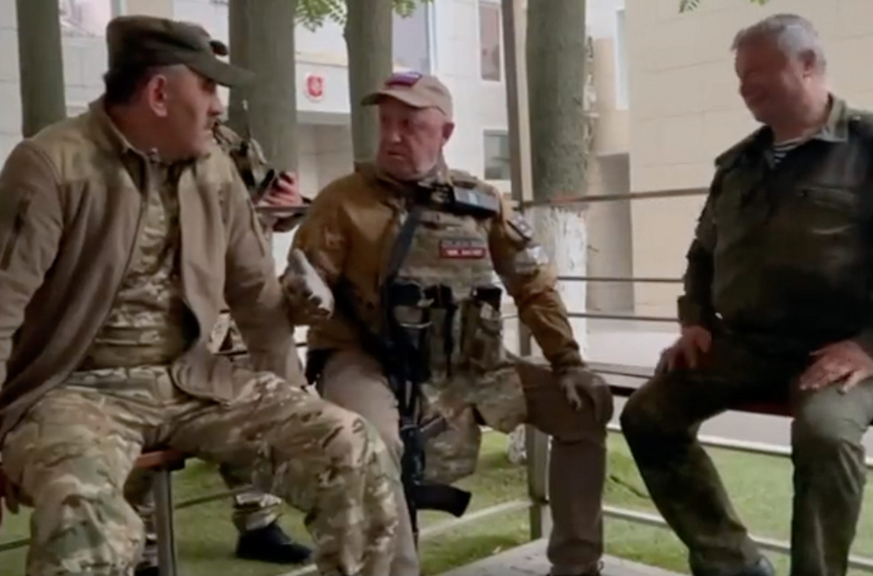 Опубликовано видео, где наемники ЧВК «Вагнер» заходят в штаб Южного военного округа ВС РФ в Ростове-на-Дону. Также там показан разговор между главой вагнеровцев Евгением Пригожиным с замминистра обороны генерал-полковником Юнус-Беком Евкуровым.