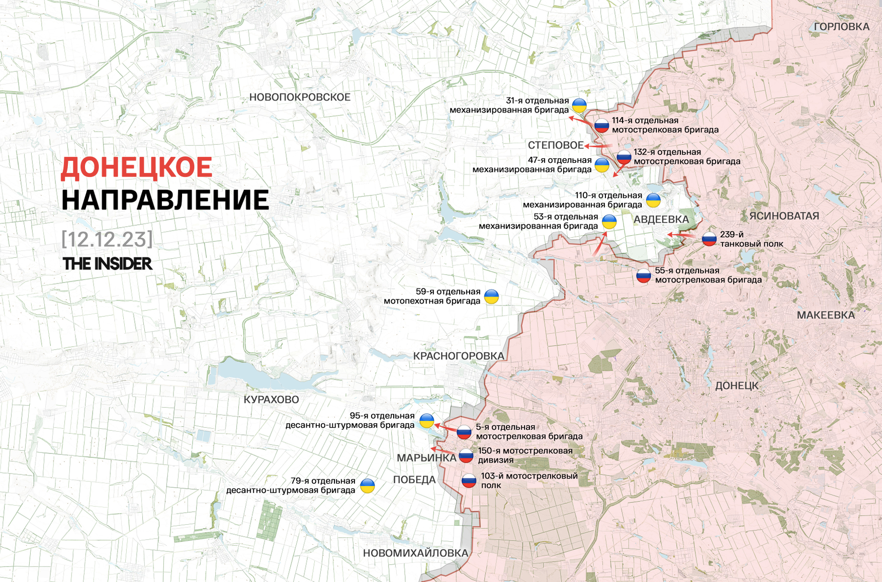 Также у ВС РФ есть небольшие успехи в районе Авдеевки. На снимках, опубликованных 9 декабря, видно, что российские войска незначительно продвинулись к востоку от Степового (3 км к северо-западу от Авдеевки). Некоторые российские «военкоры» успели заявить, что войска ВС РФ вошли в административные границы самой Авдеевки в районе улицы Колосова (Кирова).