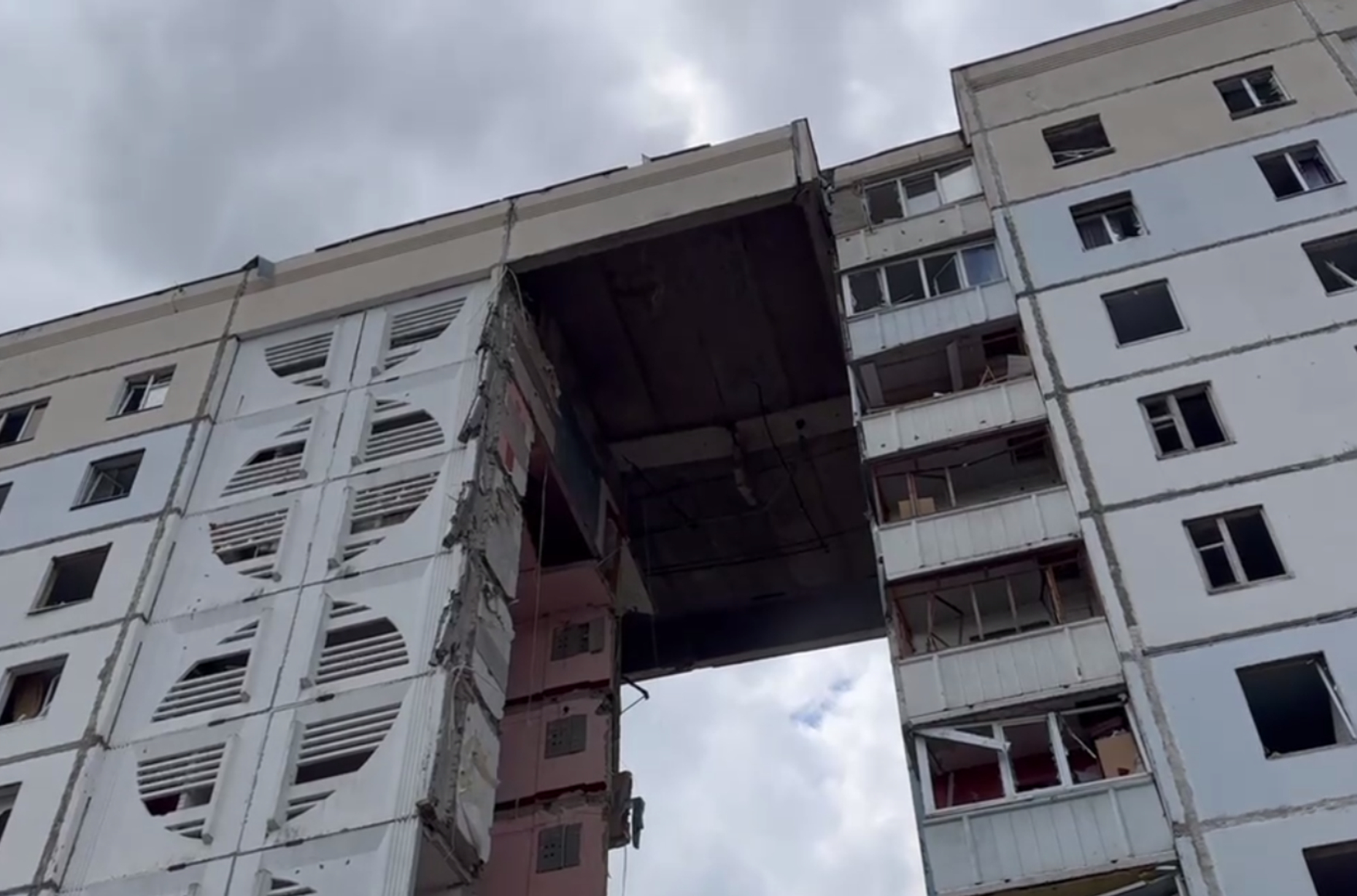 В Белгороде обрушился целый подъезд 10-этажного жилого дома на улице Щорса. Губернатор Вячеслав Гладков заявил, что в дом попал украинский снаряд.