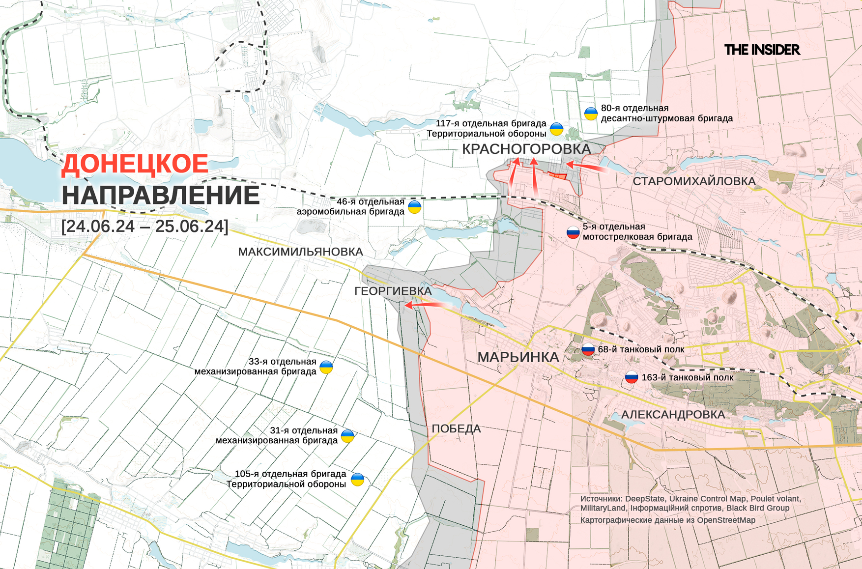- ВС РФ продвигаются в Красногоровке севернее Марьинки, «военкор» Сладков обещает взять город к концу июня
