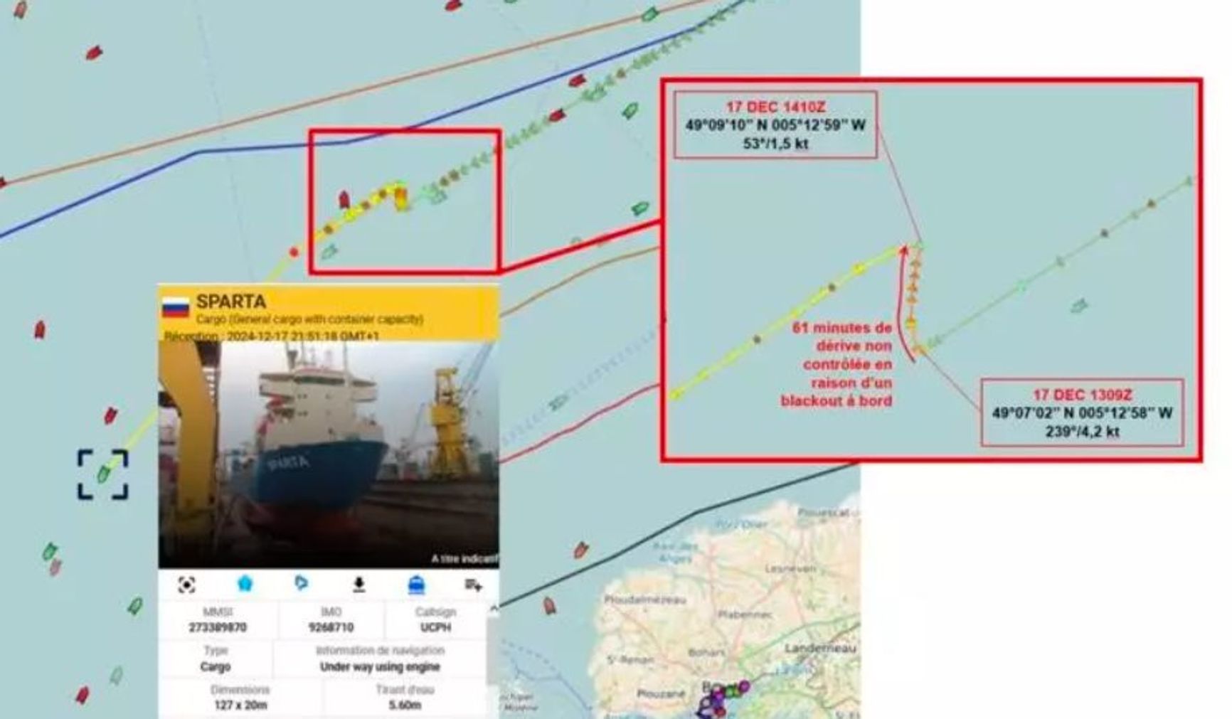 По данным Navtex, судно сигнализировало о технических неполадках 17 декабря. «У нас проблемы. Сломаны двигатели, штурвал больше не реагирует, постараемся починить в ближайшие минуты», — сообщил командир судна французским диспетчерам. Издание отмечает, что в результате экипаж решил проблемы самостоятельно, отказавшись от помощи, и продолжил путь. Французские власти не комментировали этот инцидент.
