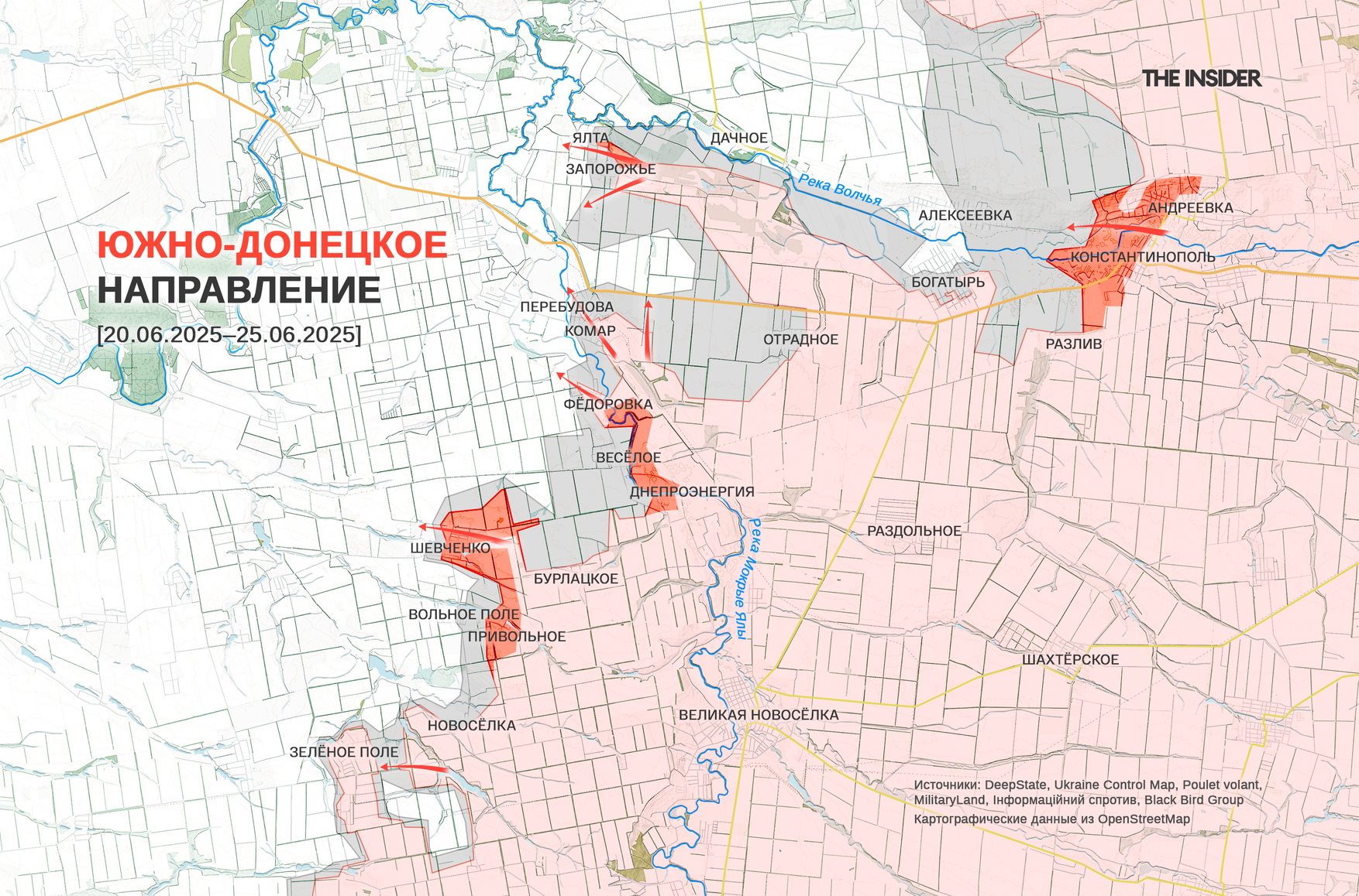 DeepState признает, что российские войска окончательно заняли Константинополь и Андреевку, а также продвинулись возле Алексеевки и Днепроэнергии и в Шевченко.