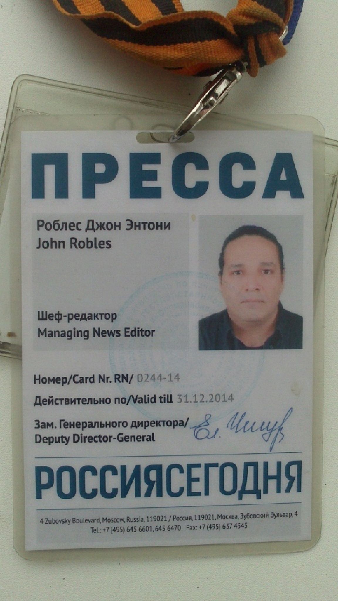 The Insider задал Роблесу вопросы по поводу его волонтерской деятельности и подозрений в попытке отравления в кабинете Киселёва, но он не ответил.
